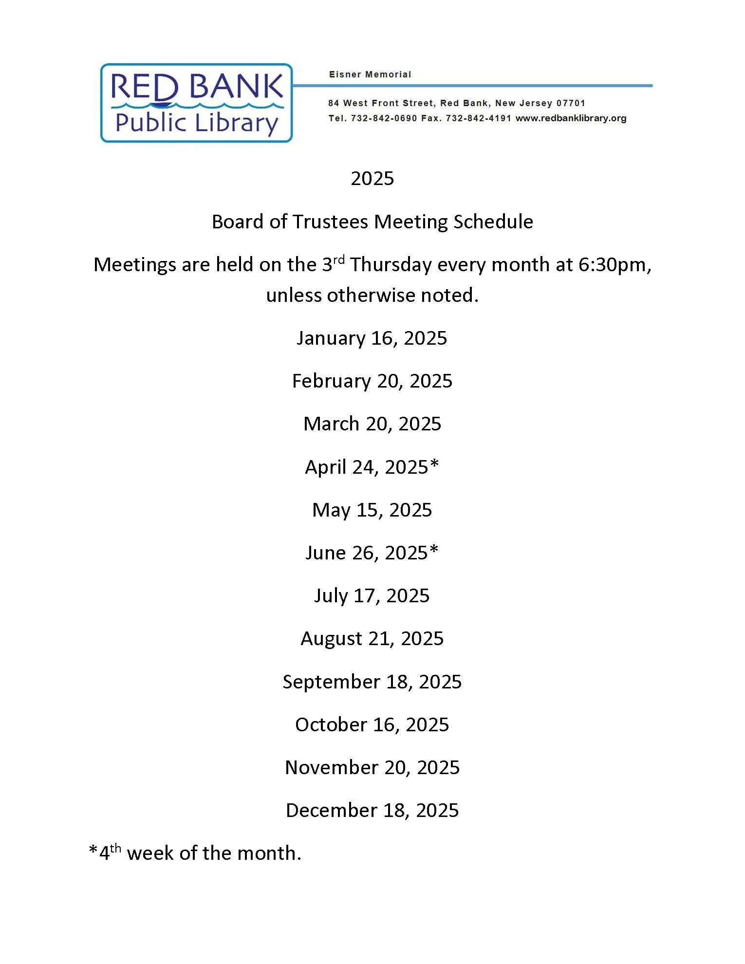 Email admin@redbanklibrary.org to contact the Library Administration.