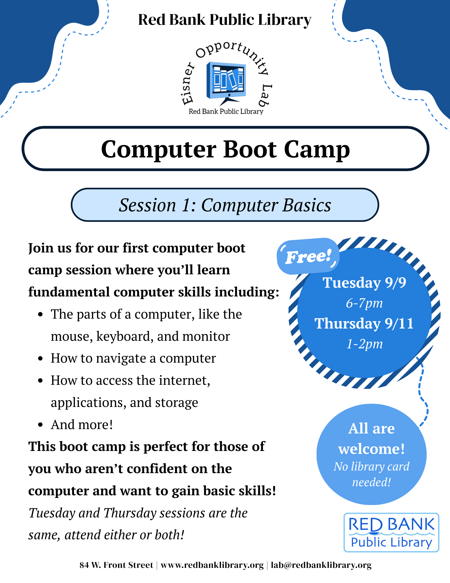 Join us for our first computer boot camp session where you’ll learn fundamental computer skills including: