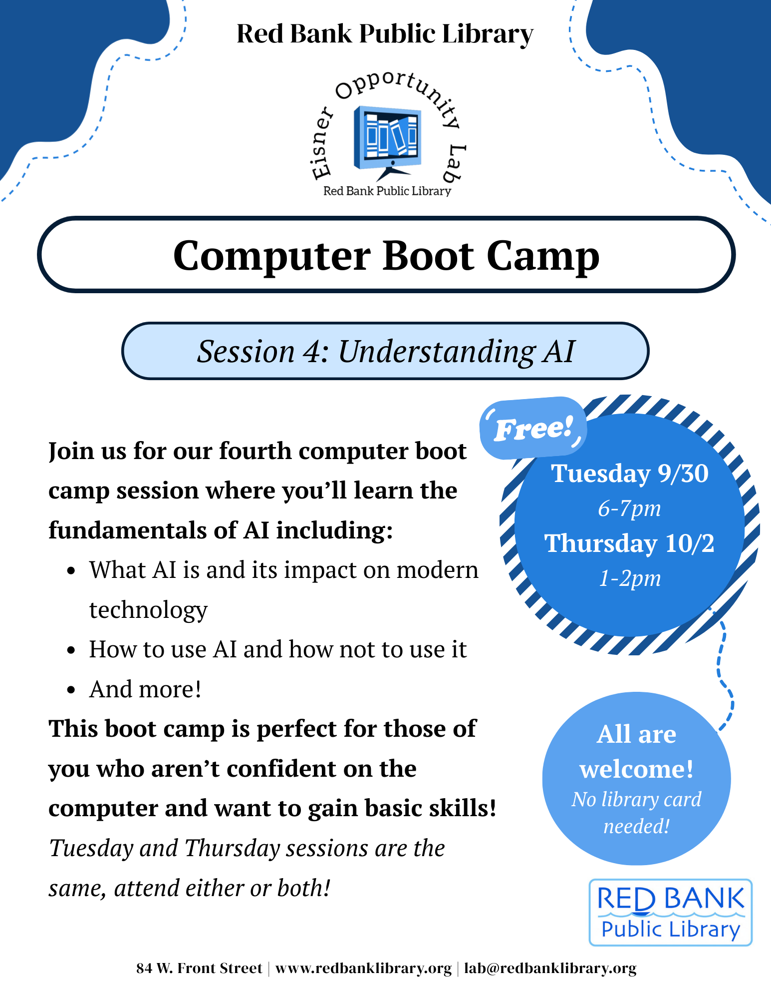 Join us for our fourth computer boot camp session where you’ll learn the fundamentals of AI including: