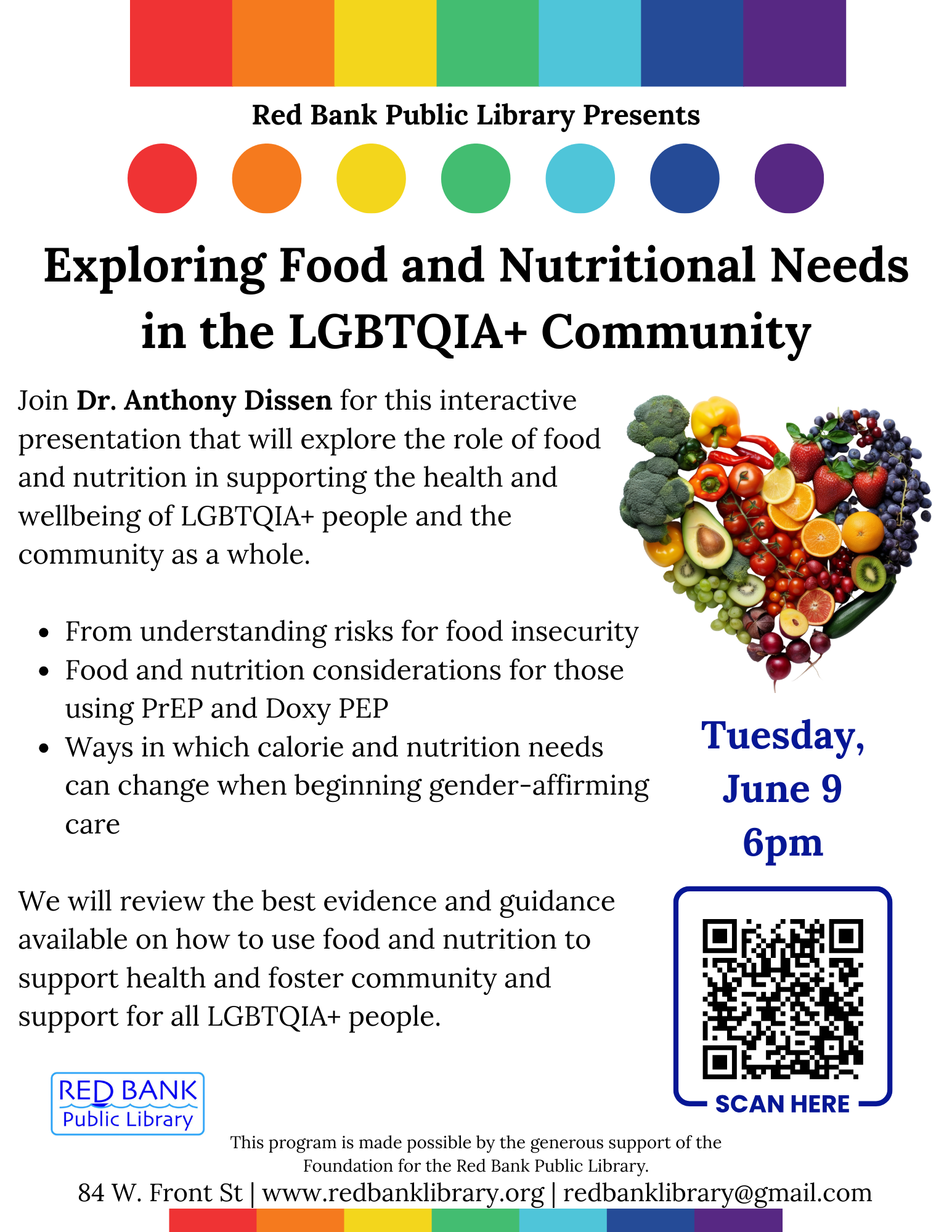 Join Dr. Anthony Dissen for this interactive presentation that will explore the role of food and nutrition in supporting the health and wellbeing of LGBTQIA+ people and the community as a whole.