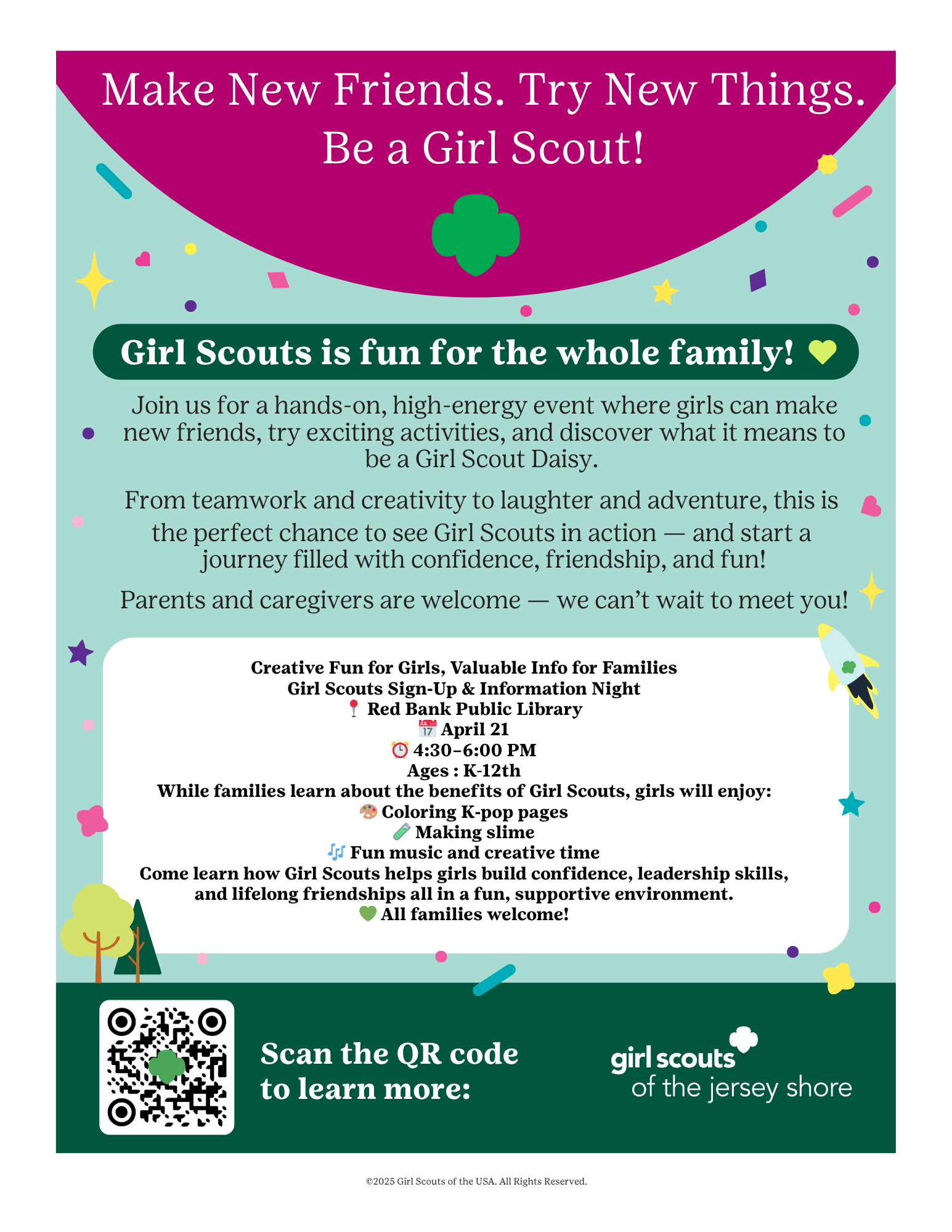 From teamwork and creativity to laughter and adventure, this is the perfect chance to see Girl Scouts in action - and start a journey filled with confidence, friendship, and fun!