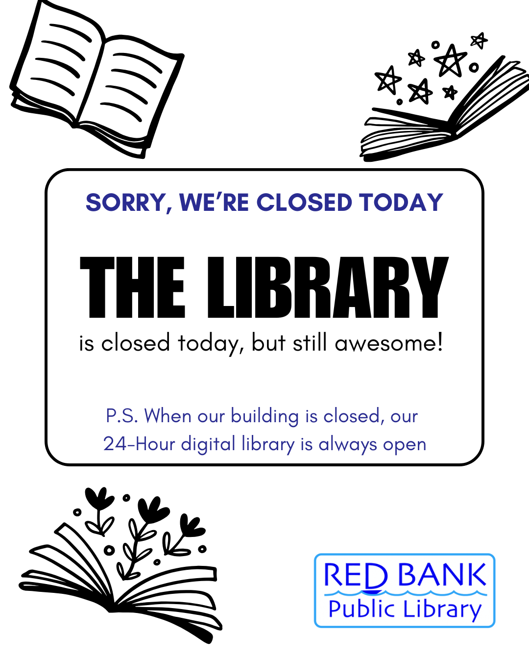 The Red Bank Public Library will close at 3:30pm for the Halloween holiday. We will reopen on Saturday, 11/1, at our normal operating hours.